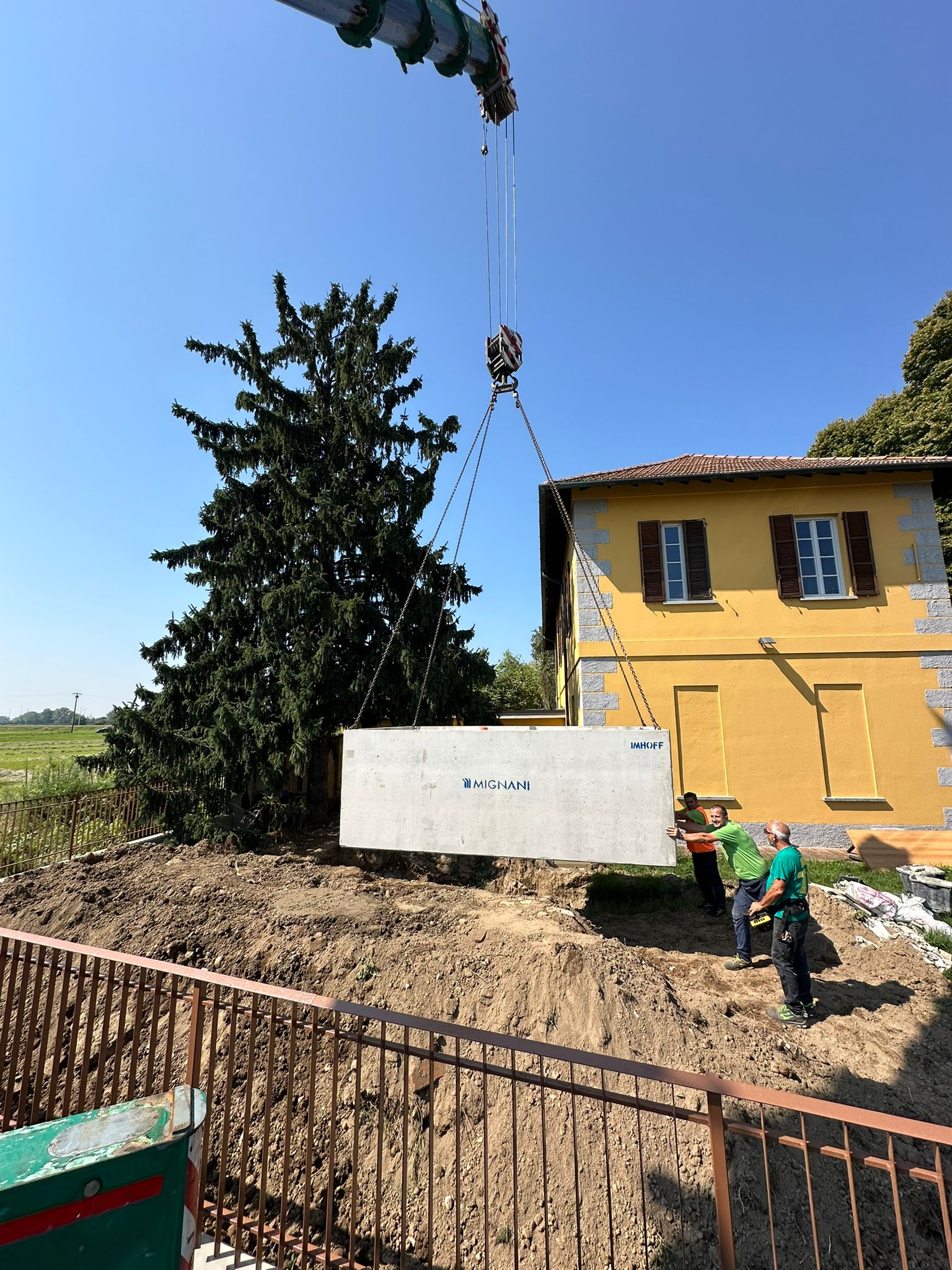 Loculi in cemento certificati ad apertura frontale cod. LOCULI prodotti con CLS autocompattante armati con inclinazione di 5-6cm, in conformità alle norme vigenti di polizia mortuaria, posizionati con carrello elevatore all’interno di una struttura nel cimitero comunale di Carate Brianza (MB)